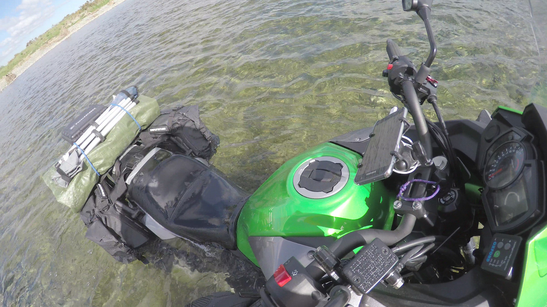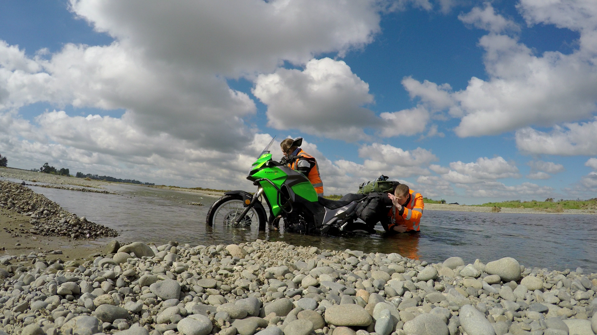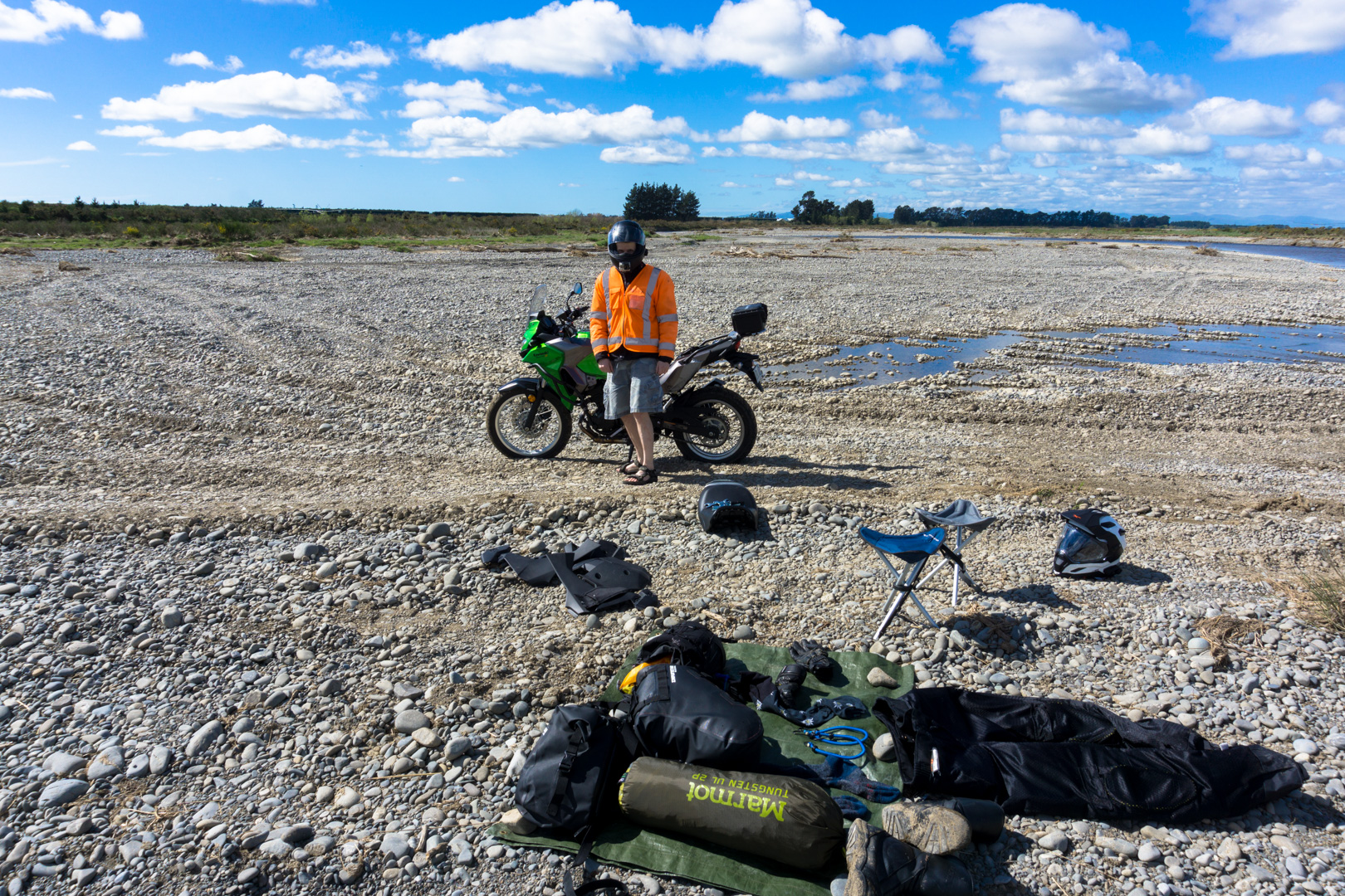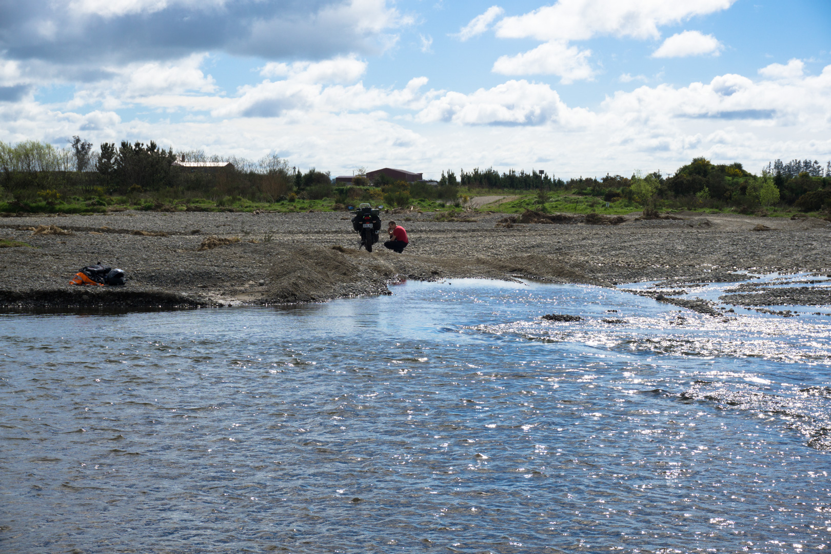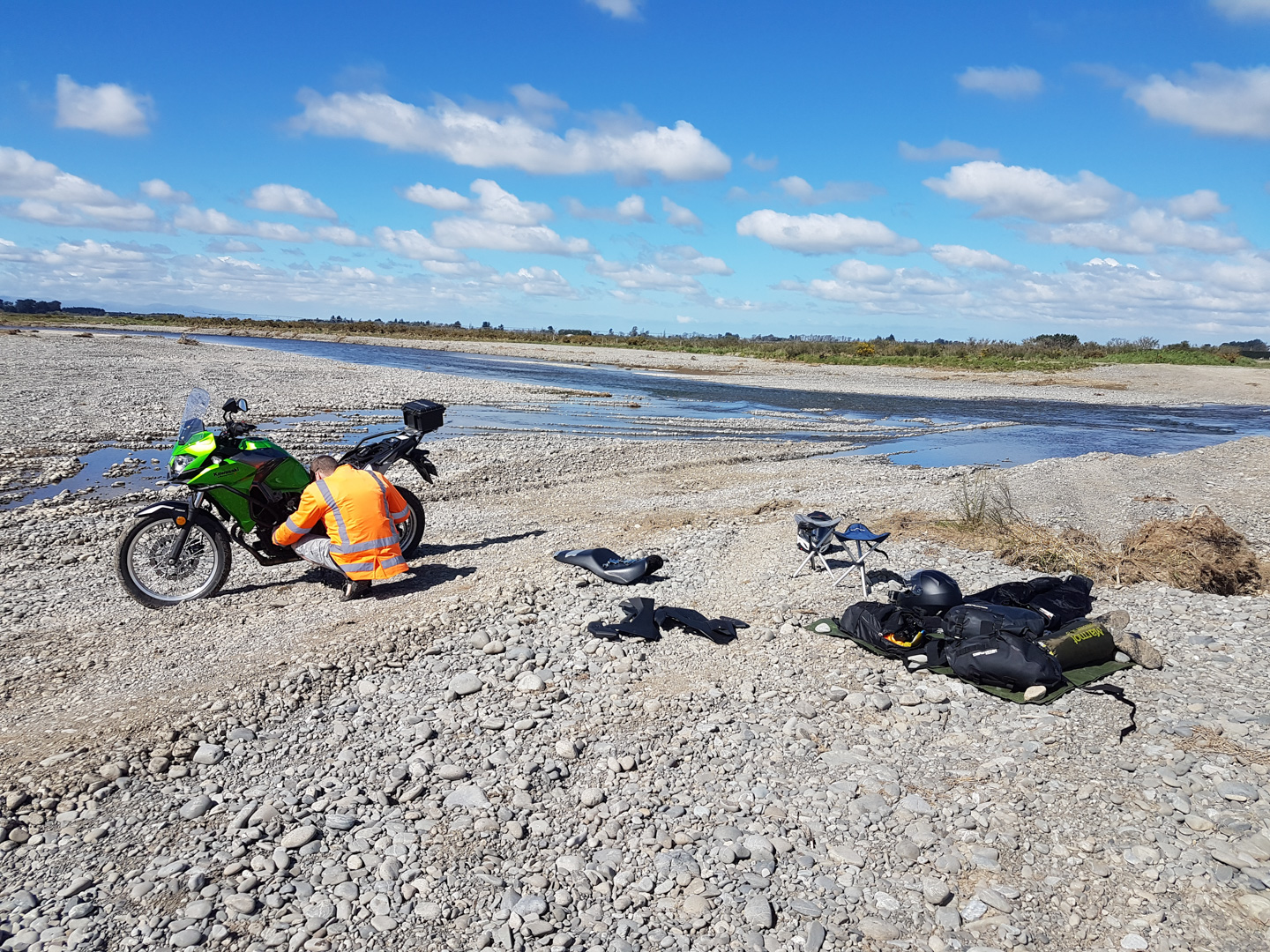 First camping trip, we decided we would cruise on out somewhere, taking in a bit of a windy route. I can’t even remember where we planned to go or to camp, but on the 2nd river crossing, Simon drowned his bike 🙁